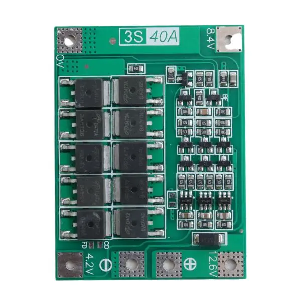 12.6V BMS 3S 40A 18650 Lithium Battery Management Board is a critical part designed to improve performance and safety in battery management. It will take your do-it-yourself battery projects to the next level. This board is made to work with systems that use the popular 18650 lithium-ion cells, which makes it an excellent choice for both amateurs and pros.