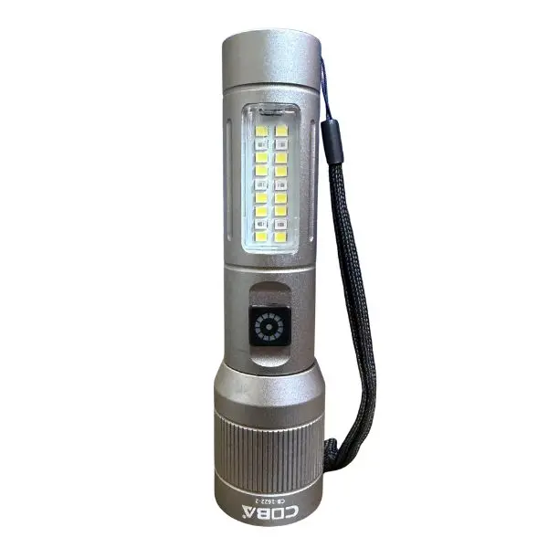 COBA CB-1622-2 LED Aluminium Body Torch Light is a durable torch you can always count on, no matter the situation. The metal body of this powerful torch is sure to last and makes it appropriate for nearly every place you might find yourself. It is super bright with a side COB light that becomes visible and works for all different types of operations; use it for more objective actions or within your regular tasks.