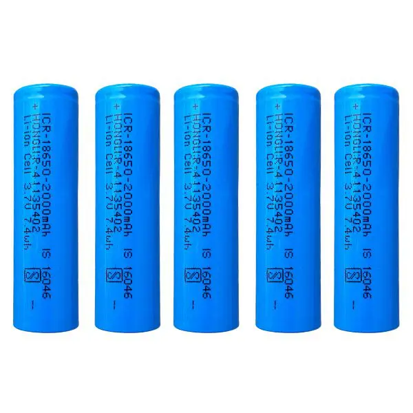 Hongli 2000mAh 3.7V 18650 Li-Ion Cell Battery (Pack of 5) is the ultimate performance 18650 lithium batteries for trimmers, torches, and emergency lights as well as custom battery making for bicycles and electric scooters. These cells have a 2000 mAh capacity and give you a 2 amp full capacity with 42g approx weight.