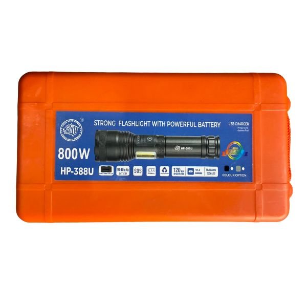 HP 800W HP-388U Metal Body With Signal Light Torch Light is the best choice for anyone who wants to feel safe in the wild, take care of their land as a farmer, or just want something reliable to use every day. It meets and goes beyond your standards because it has the right amount of power, durability, and versatility.