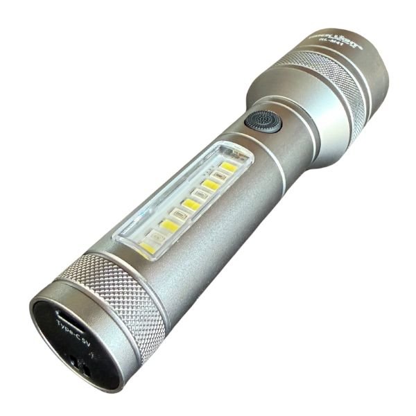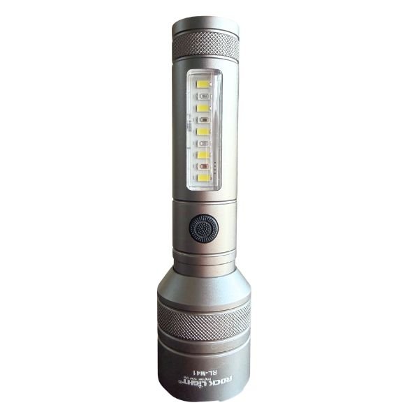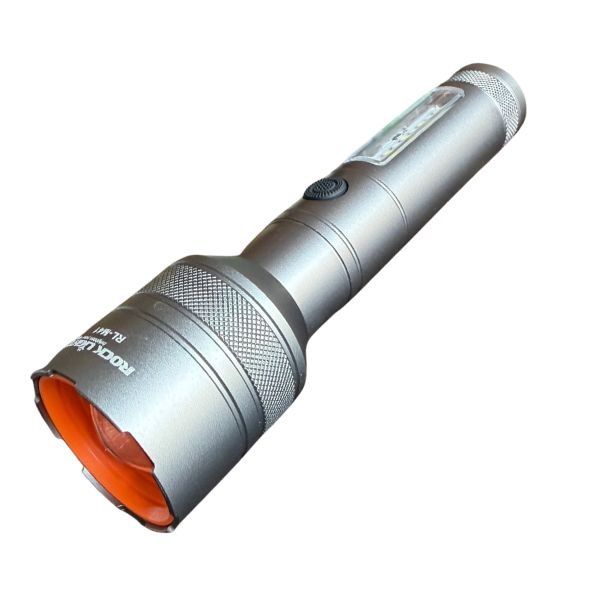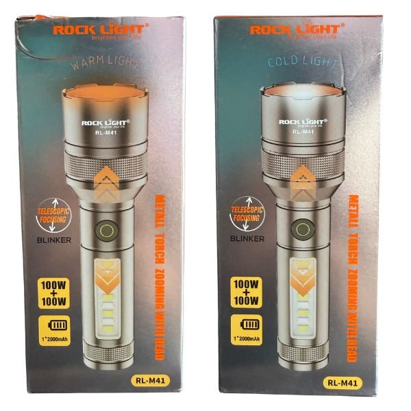 Rock Light RL-M41 Yellow And White LED Zooming Metal Torch is a durable torch you can always count on, no matter the situation. The metal body of this powerful torch is sure to last and makes it appropriate for nearly every place you might find yourself. It is super bright with a side COB light that becomes visible and works for all different types of operations; use it for more objective actions or within your regular tasks.
